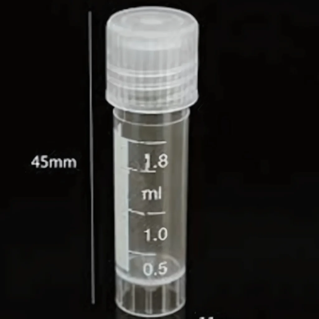 Each 2ml cryovial features a secure, leak-proof screw cap with an O ring seal that safeguards sample integrity, minimizes contamination risks, and prevents evaporation during long term storage. The tubes are designed with external threading for easy handling, clear graduations for accurate volume measurement, and a writable surface for efficient sample identification.